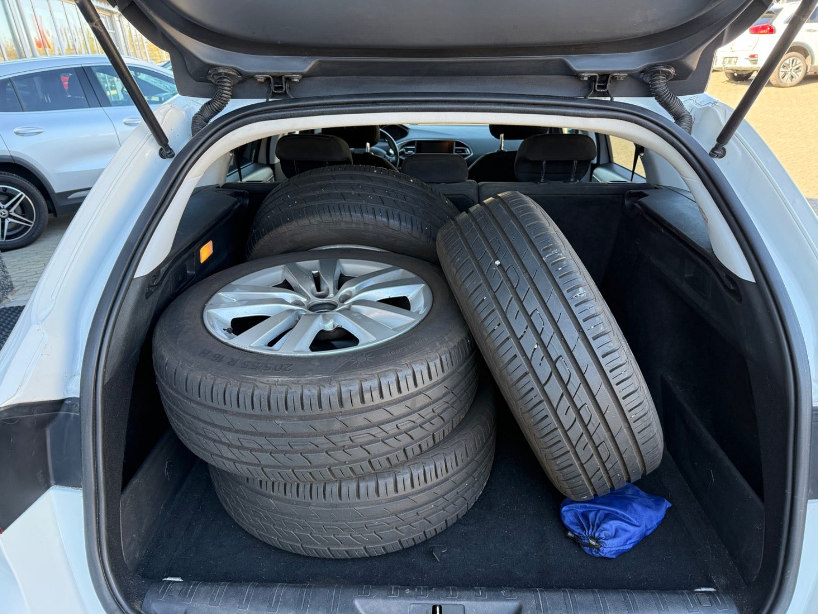 læderrat, stofindtræk, kørecomputer, bagagerumsdækken, 16″ alufælge, vinterhjul, led kørelys, træk, fartpilot, 2 zone klima, el-sidespejle m/varme, mørktonede ruder i bag, udv. temp. måler, fjernb. centrallås, sædevarme, navigation, isofix, esp, airbag, multifunktionsrat, håndfrit til mobil, musikstreaming via bluetooth